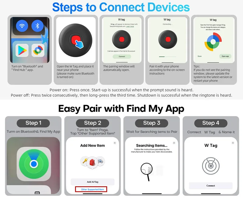 1 ใCOMPATIBILE CON DOPPI SISTEMI, PUร INTERRUTTARE LIBERAMENTEใ La versione aggiornata dell’air tag a doppio sistema nel 2025 elimina le tue preoccupazioni relative alla compatibilitร del sistema.Puoi collegare localizzatori come tag aerei a iOS o Android, il localizzatore di tag a doppio sistema รจ una combinazione di smart finder certificato Apple e smart finder certificato Google.I tag aerei compatibili sia con iOS che con Android possono funzionare perfettamente con entrambe le piattaforme.Air tag per telefoni Android o iOS รจ compatibile con l’app “Find My” di Apple o l’app “Find Center” di Google.Non รจ richiesta alcuna commissione di abbonamento. (Nota: non puรฒ essere accoppiato con iOS e Android contemporaneamente.)