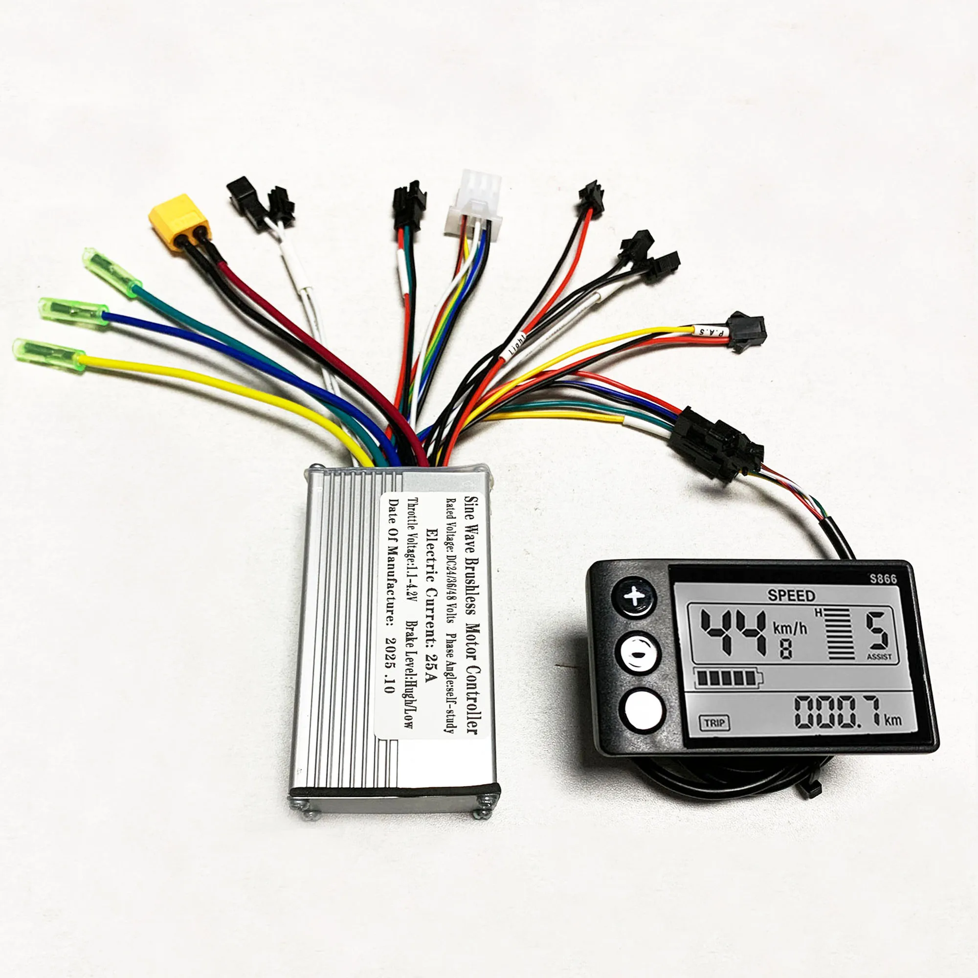 Controller display onda sinusoidale Ebike 25A tre modalità 24V/36V/48V con funzione di apprendimento Display LCD S866 Motore 350W-500W per scooter elettrico