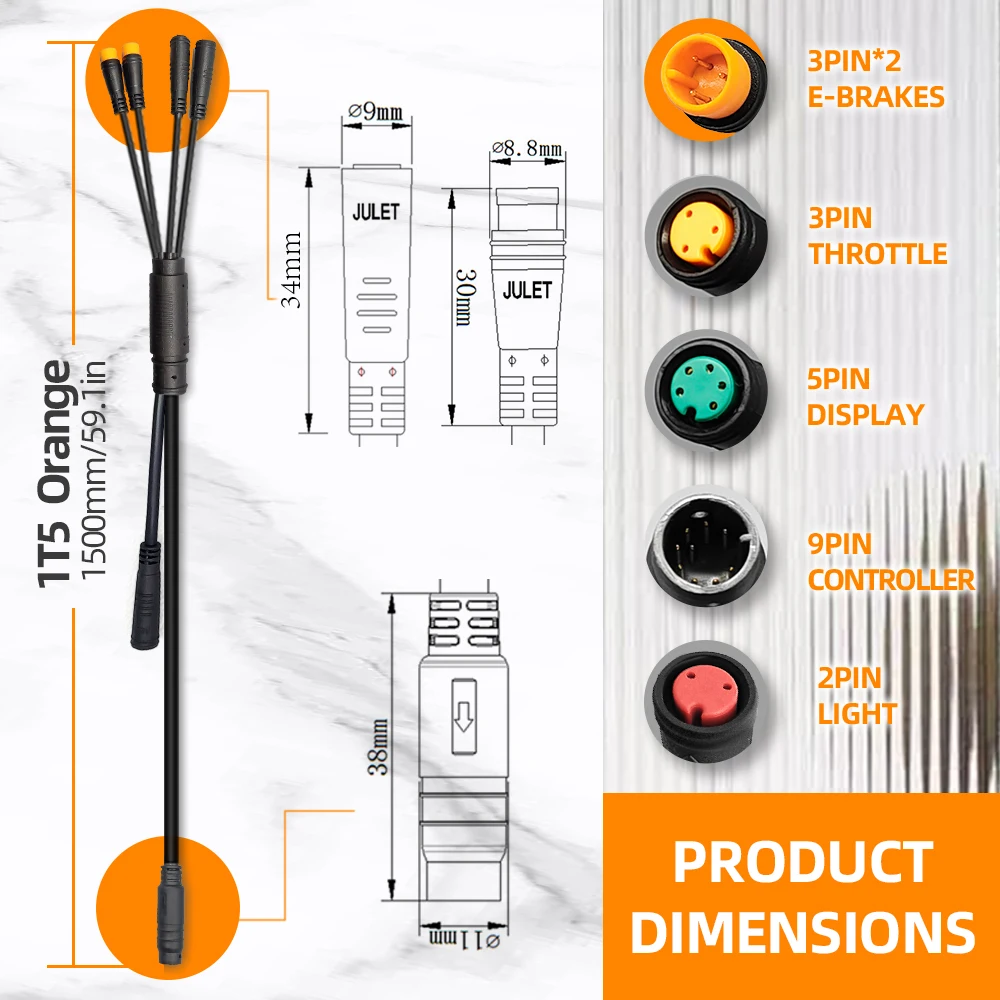 Si prega di notare che il cavo freno 1T5 in questo prodotto รจ la spina maschio a 3 pin.