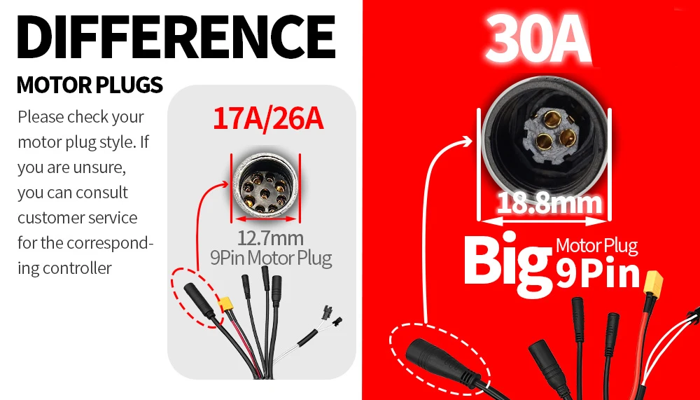 Si prega di notare che quando si acquista uncontroller impermeabile, la misurazione della dimensione della spina di collegamento del motore dovrebbe essere accurata per garantire che possa essere collegata!! !