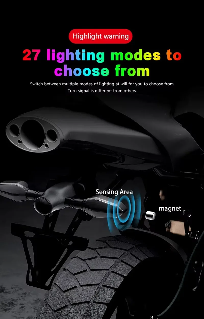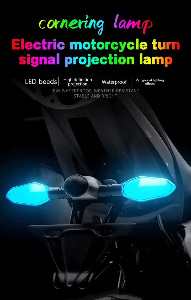 Lampada per indicatori di direzione a LED per moto da 2 pezzi con lampade di proiezione a freccia 27 modalità di illuminazione Luce di svolta ambientale colorata impermeabile