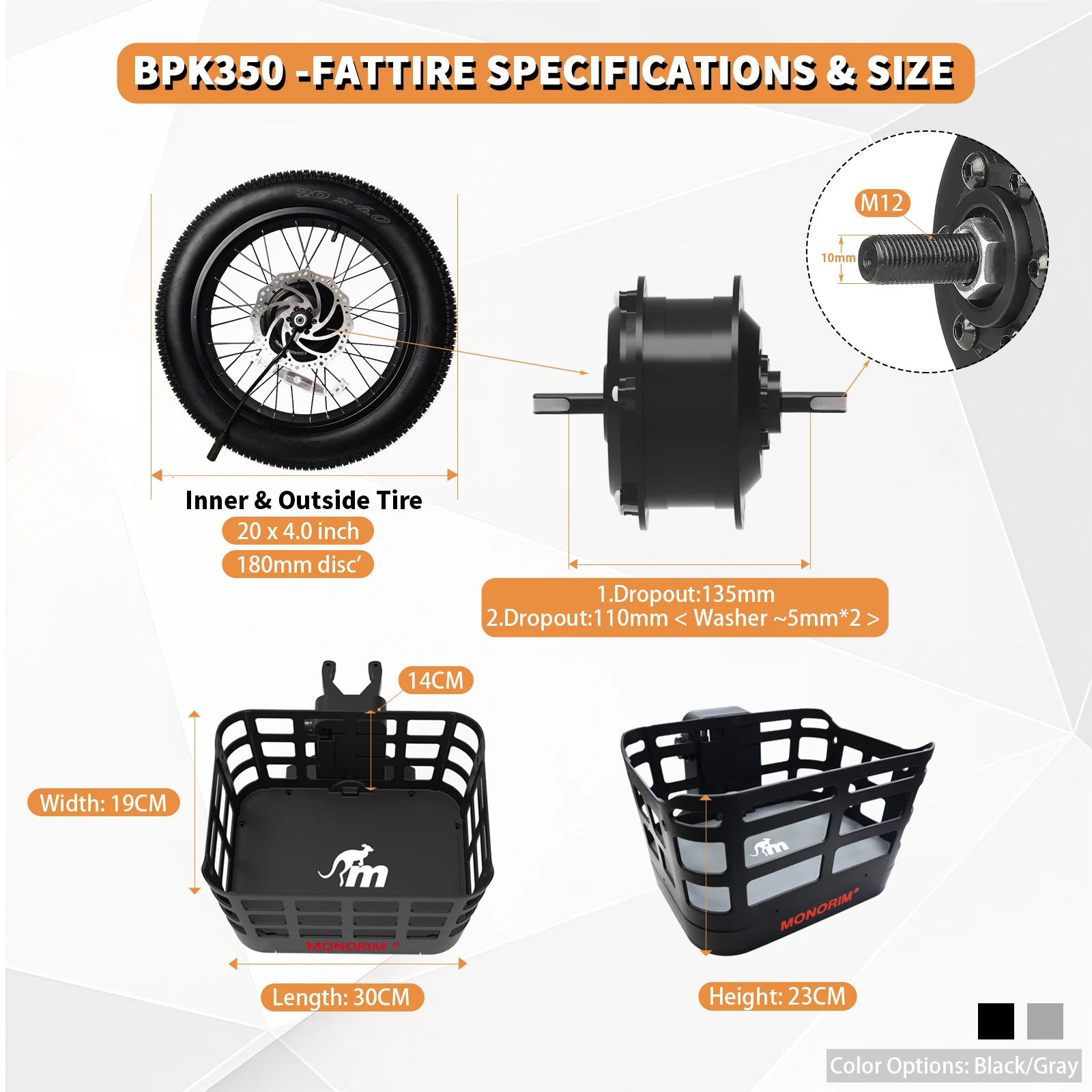 Monorim BPK350-FATTIRE – Modello per ruote FAT 20″ x 4.0