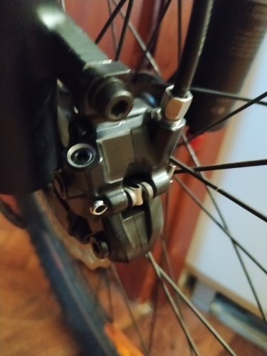 il freno Shimano montato su disco da 160mm si รจ perfettamente adattato, ho fatto 15 km in discesa dal vulcano Etna senza alcun problema